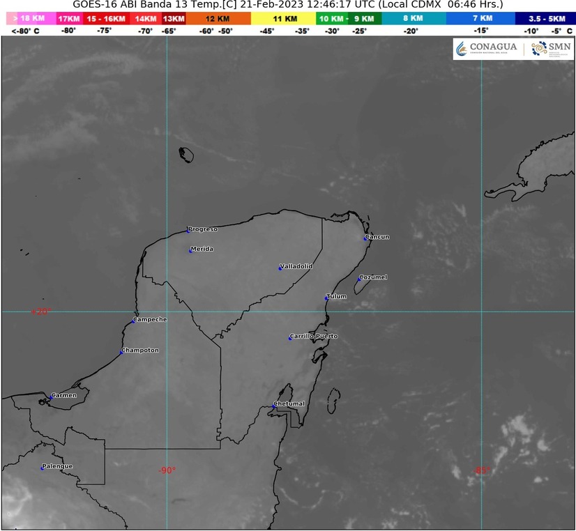 En la Península de Yucatán, el cielo estará medio nublado con lluvias aisladas en Quintana Roo y cielo parcialmente nublado, sin lluvia en Campeche y Yucatán. El ambiente será templado por la mañana y cálido a caluroso por la tarde, con viento de componente este de 15 a 30 kilómetros por hora en la región, con rachas de hasta 60 en zonas de Campeche, Yucatán y Quintana Roo.