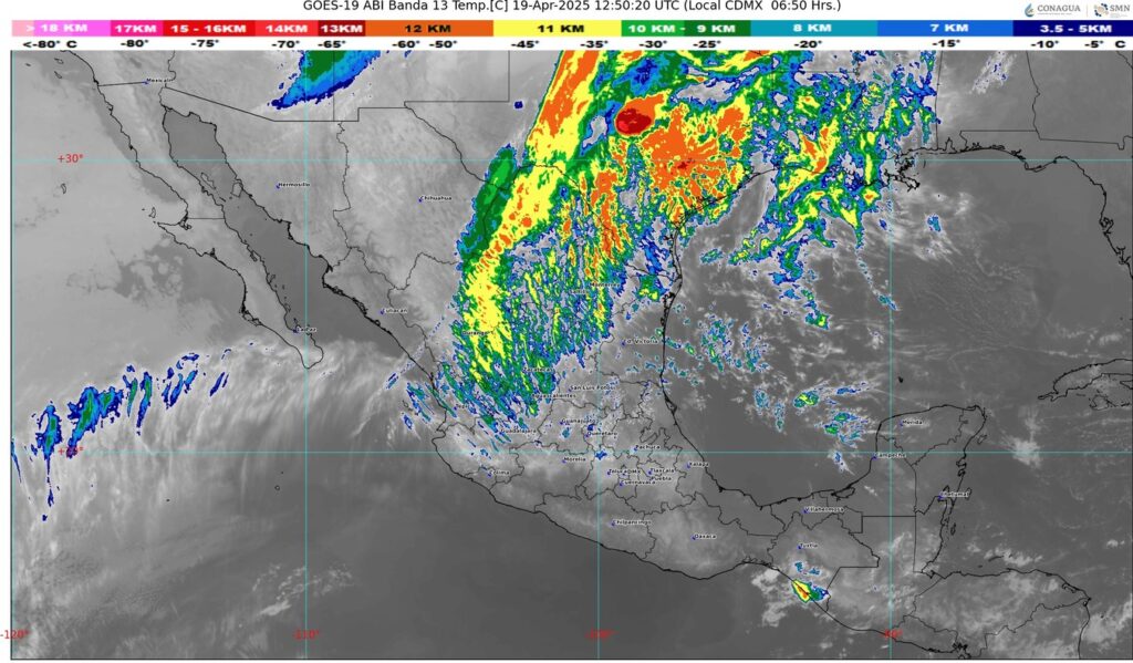 Asimismo, existirán condiciones para lluvias aisladas y la caída de aguanieve o nieve en Sonora (noreste) y Chihuahua (noroeste) durante la mañana. También, se pronostican rachas de viento de 70 a 90 km/h con tolvaneras en Sonora, Chihuahua y Durango, y con probabilidad de torbellinos o tornados en Coahuila, Nuevo León y Tamaulipas.