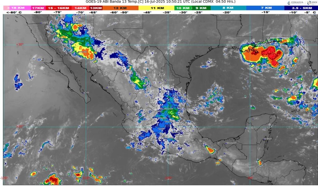 Un canal de baja presión en combinación con inestabilidad atmosférica sobre la Mesa del Norte y Mesa Central y con el ingreso de aire húmedo del golfo de México, originarán lluvias puntuales fuertes en Puebla, Morelos, Estado de México, Cuidad de México, Hidalgo, Querétaro, Guanajuato, Aguascalientes y Zacatecas.