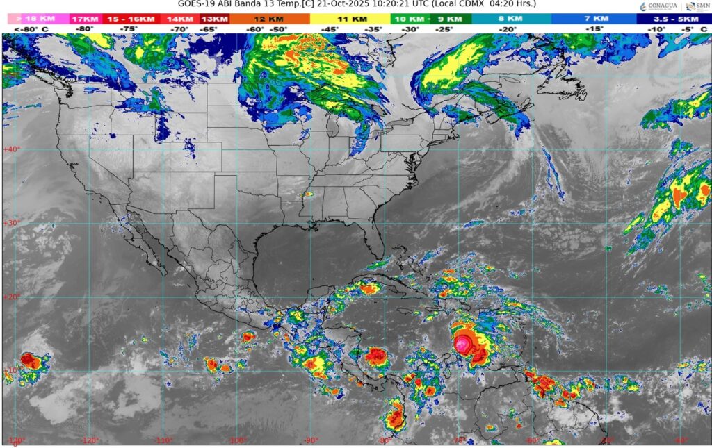 Una zona de baja presión con probabilidad para desarrollo ciclónico al sur de las costas de Guerrero y Oaxaca, originará lluvias fuertes a muy fuertes en dichas entidades. Otro canal de baja presión se extenderá sobre el occidente y centro del territorio nacional, y, en combinación con el ingreso de humedad del océano Pacífico y golfo de México, ocasionarán lluvias y chubascos en dichas regiones.