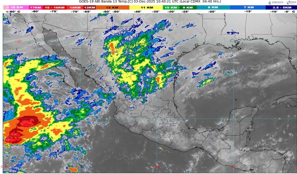🔸La aproximación de un sistema frontal al noroeste y norte del país provocará lluvias en varias entidades.